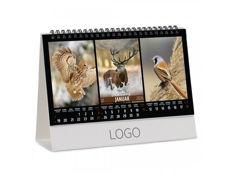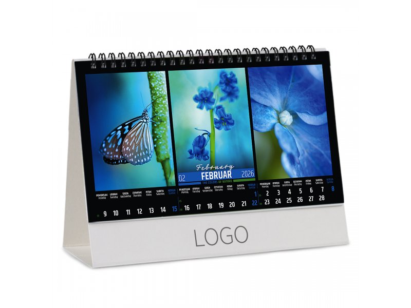 | Opis | Stoni kalendar, format: 22.5 x 13 cm Papir: kunstdruk 150 g/m2 Postolje: hromo karton 450 g/m2 Povez: metalna spirala Prostor za štampu: 22.5 x 3.5 cm |