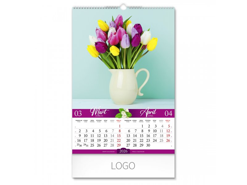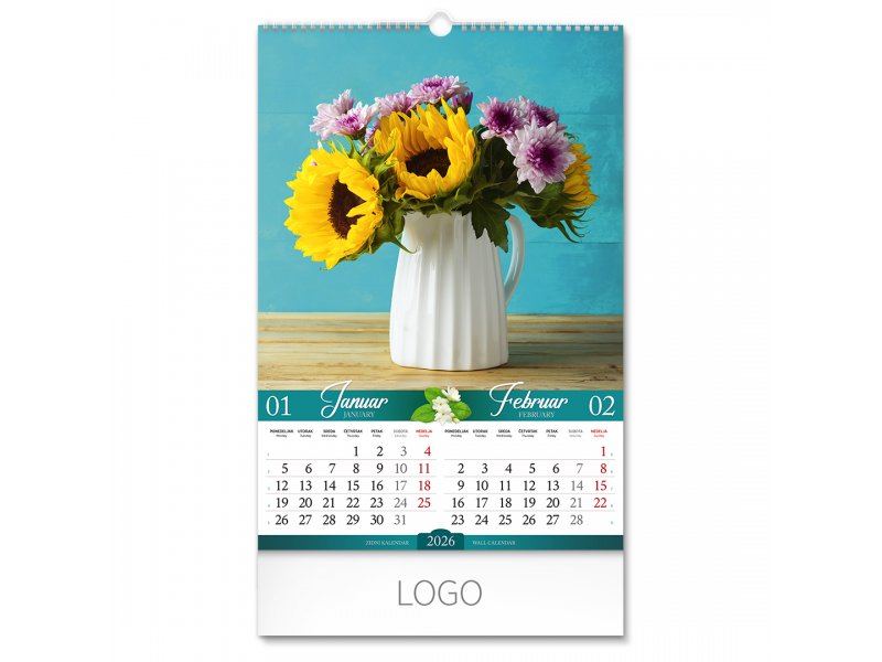 | Opis | Zidni kalendar: 7 listova, dvomesečni Dimenzija 33 x 47.5 cm |