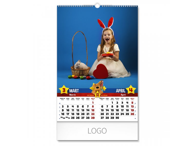 | Opis | Zidni kalendar: 7 listova, dvomesečni Dimenzija 33 x 47.5 cm |
