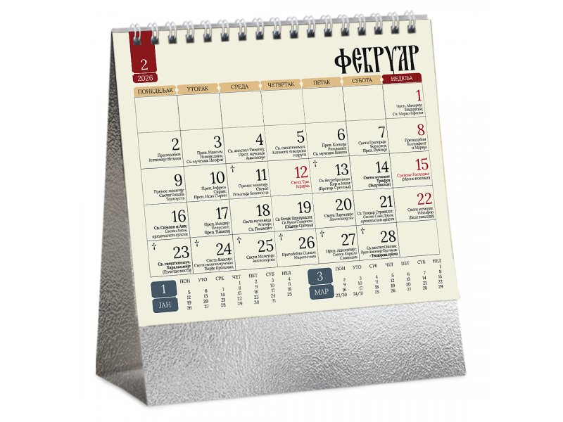 | Opis | Stoni kalendar,13 lista, Format: 15.5x13 cm Papir: kunstdruk 450 g/m2 Postolje: kaširan srebrna presvlaka na lepenku Povez: metalna spirala Prostor za štampu: 15.5 x 3.5 cm |