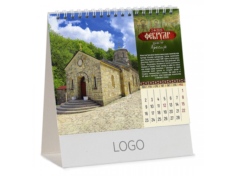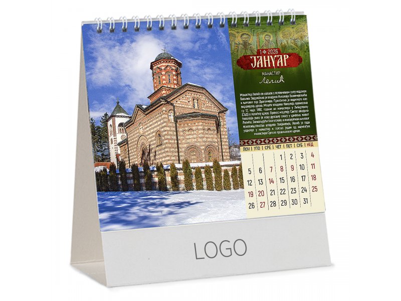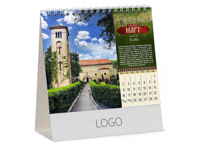 | Opis | Stoni kalendar. Format: 15.5 x 13 cm Papir: kunstdruk 150 g/m2 Postolje: hromo karton 450 g/m2 Povez: metalna spirala Prostor za štampu: 15.5 x 3.5 cm |