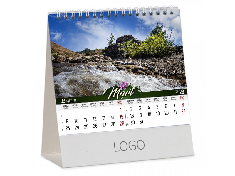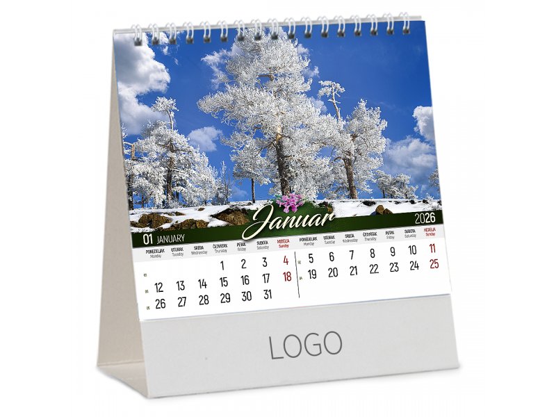 | Opis | Stoni kalendar 13 listova Format: 15.5 x 13 cm Papir: kunstdruk 150 g/m2 Postolje: hromo karton 450 g/m2 Povez: metalna spirala |
