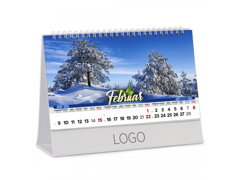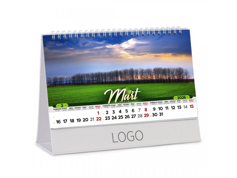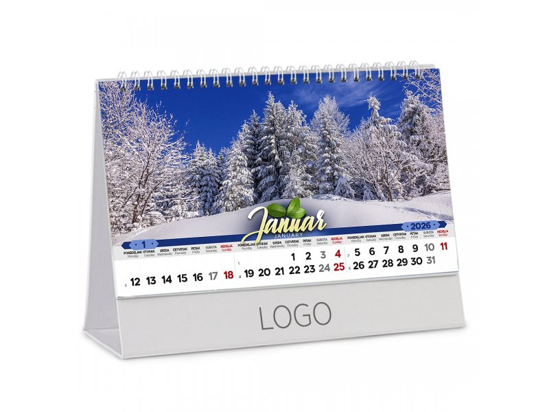 | Opis | Stoni kalendar, format: 22.5 x 13 cm Papir: kunstdruk 150 g/m2 Postolje: kaširan kunsdruk na lepenku Povez: metalna spirala Prostor za štampu: 22.5 x 3.5 cm |