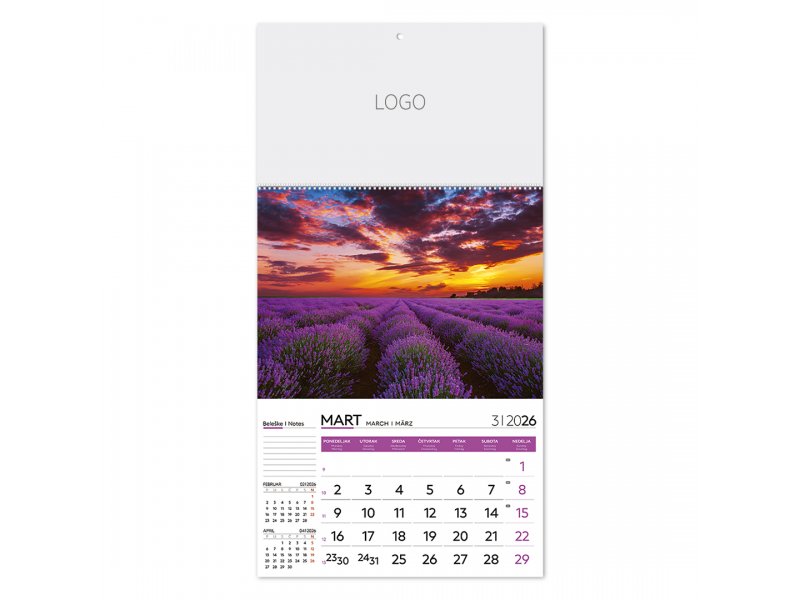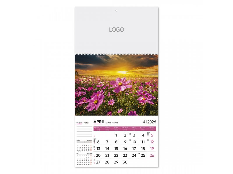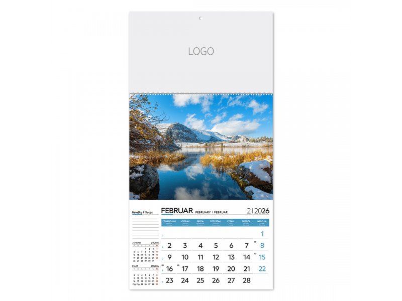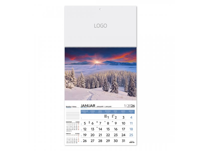 | Opis | Zidni kalendar: Jednodelni, 12 listova, Mesečni Dimenzija 30 x 40 cm |